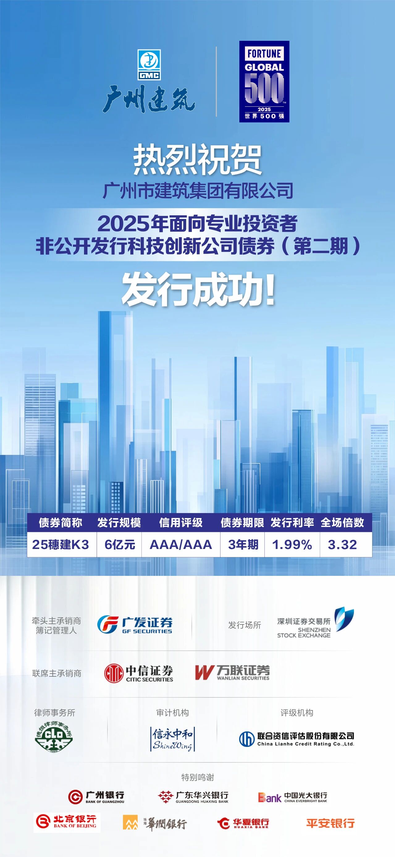 廣州建筑集團(tuán)成功發(fā)行6億元科創(chuàng)債 票面利率1.99%